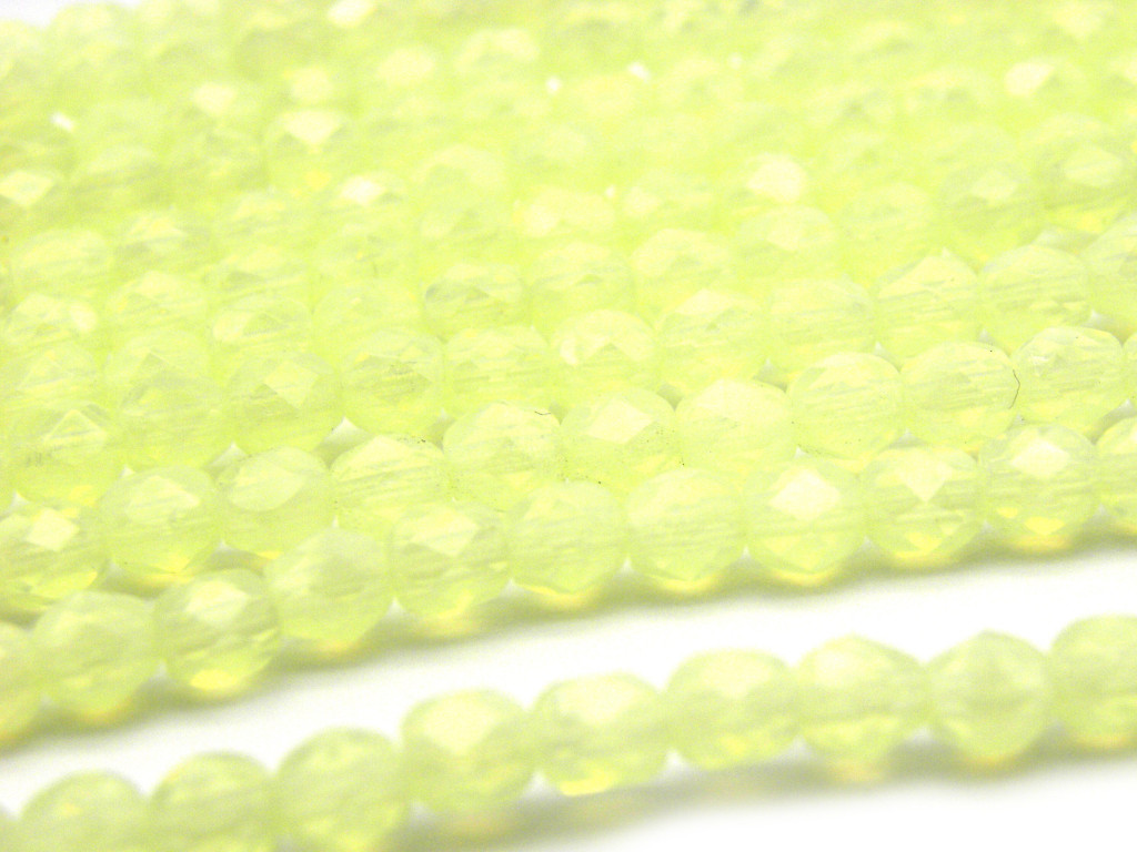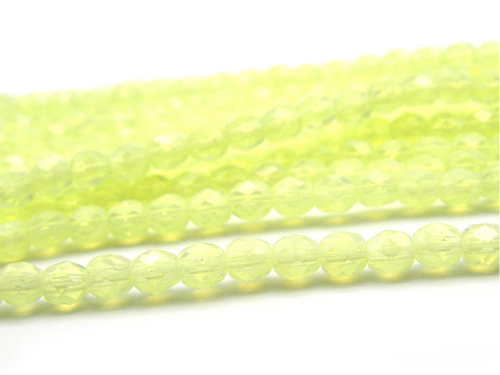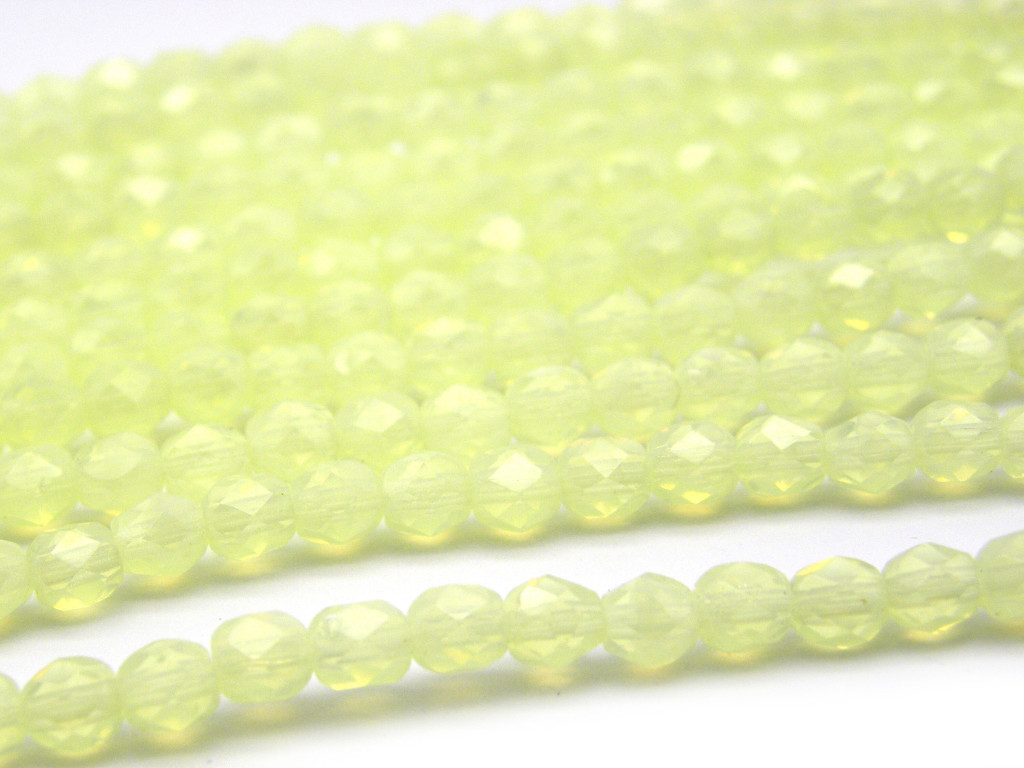 Kleine runde feuerpolierte Glasperlen 4 mm - Jonquil Opal - 50 Stück