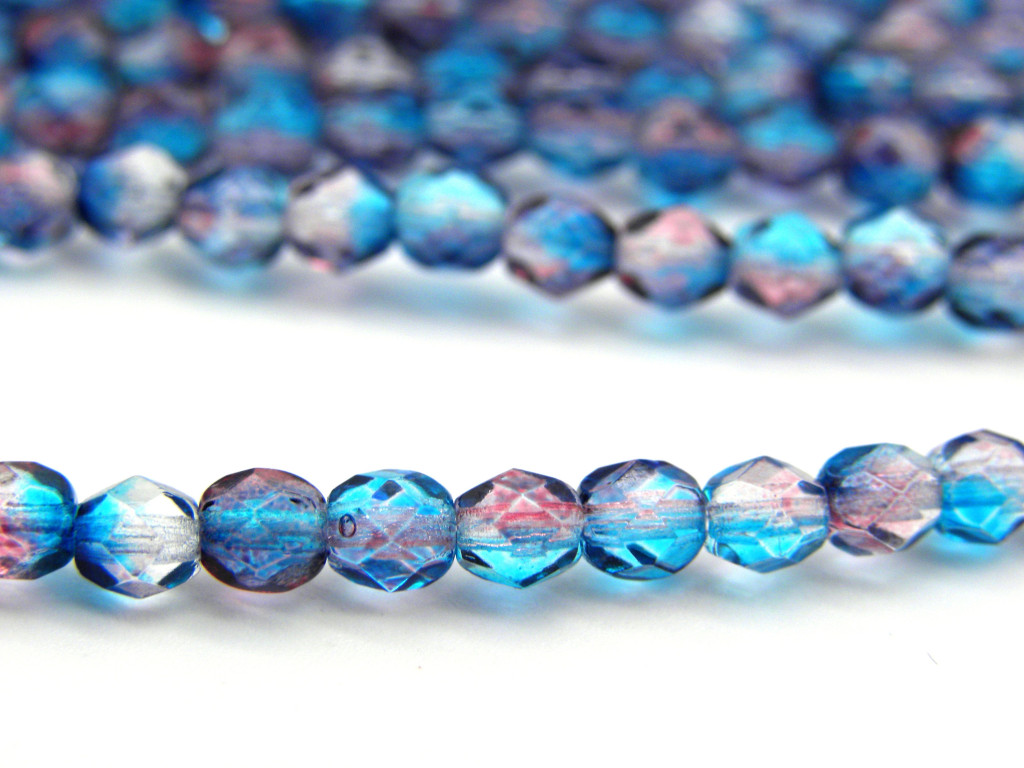 50 Stk. Tschechische feuerpolierte Glasschliffperlen 4 mm - Zweifarbig Aqua/Fuchsia
