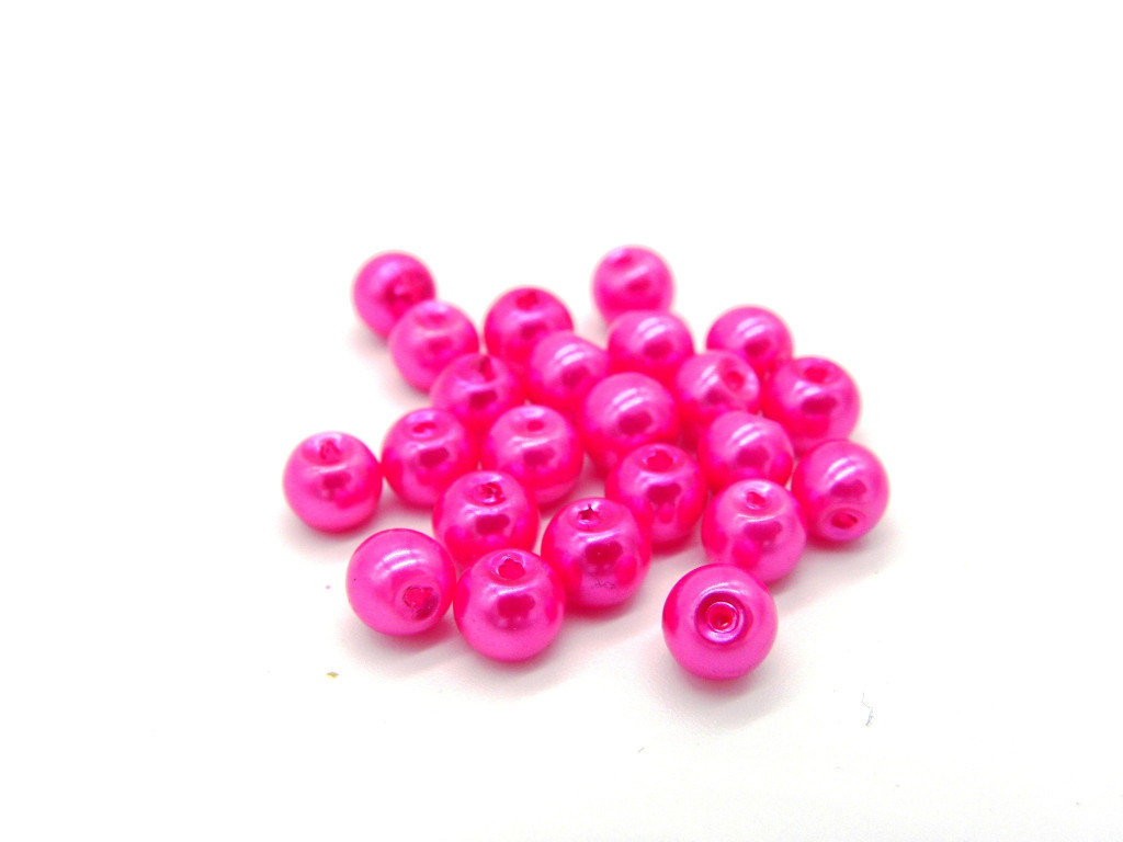 6 mm Runde Glaswachsperlen - Hot Pink hell (25 Pc.)
