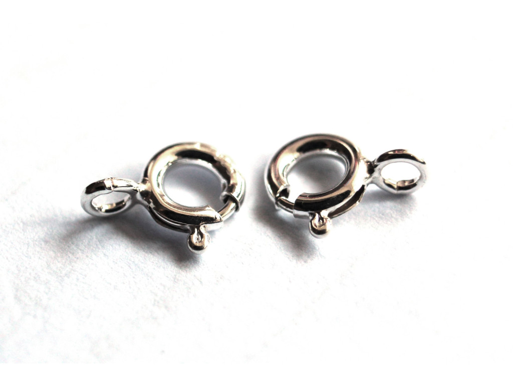Mittelgroßer 925 Sterlingsilber Federringverschluss 6 mm mit Ring - 2 ,10 Stück