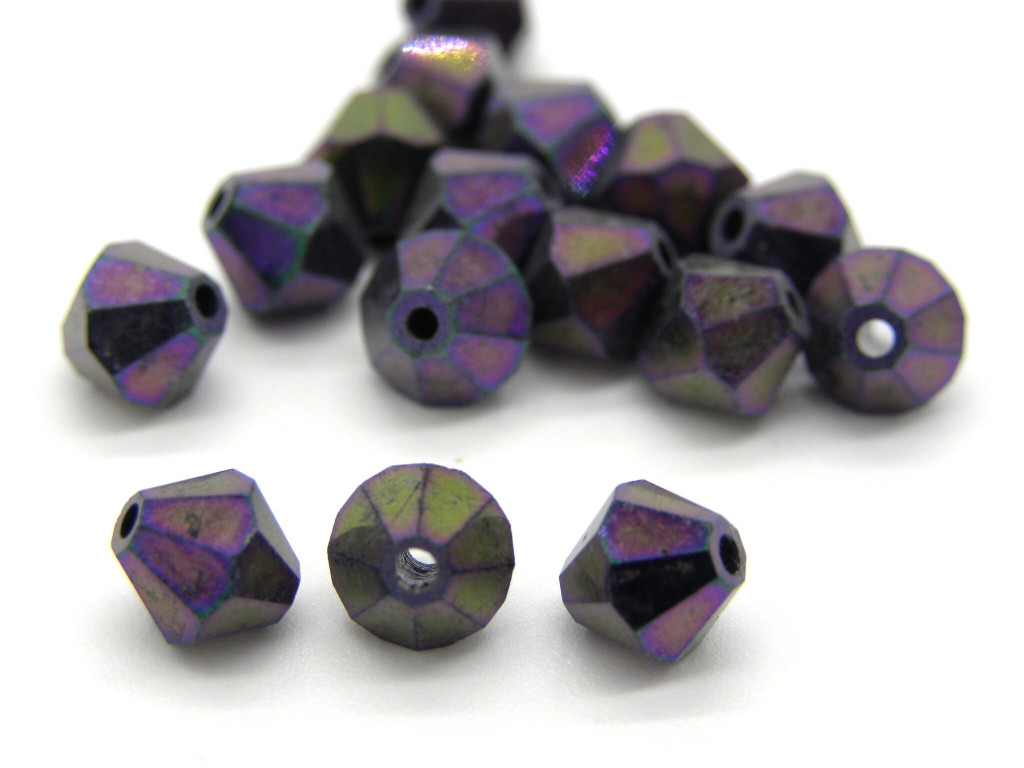 Tschechische geschliffene Glas-Doppelkegelperlen 6 mm - Jet Purple Iris (24 Perlen)