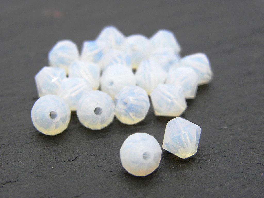 Schnellsuche Perlen, Tschechische Perlen, Doppelkegel, 6mm Doppelkegel, Doppelkegel Perlen, Kristalldoppelkegel, Rhomben, MC Doppelkegel, böhmische Glasperlen, Swarovski 5328, facettierte Perlen, Weißer Opal Perlen