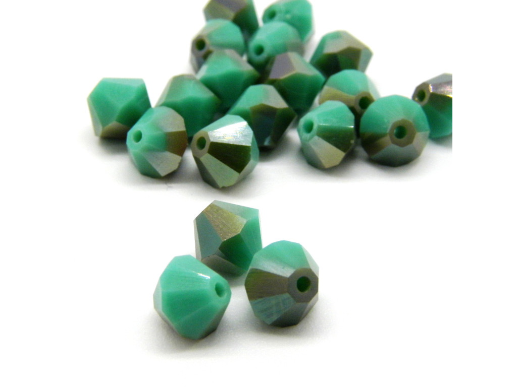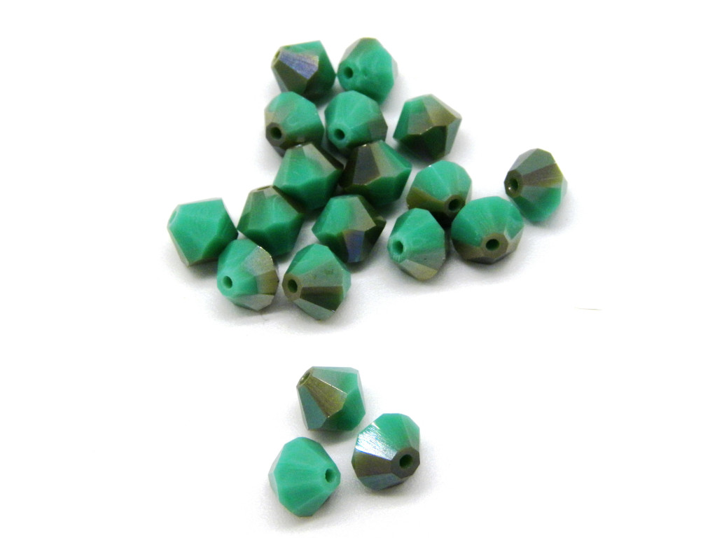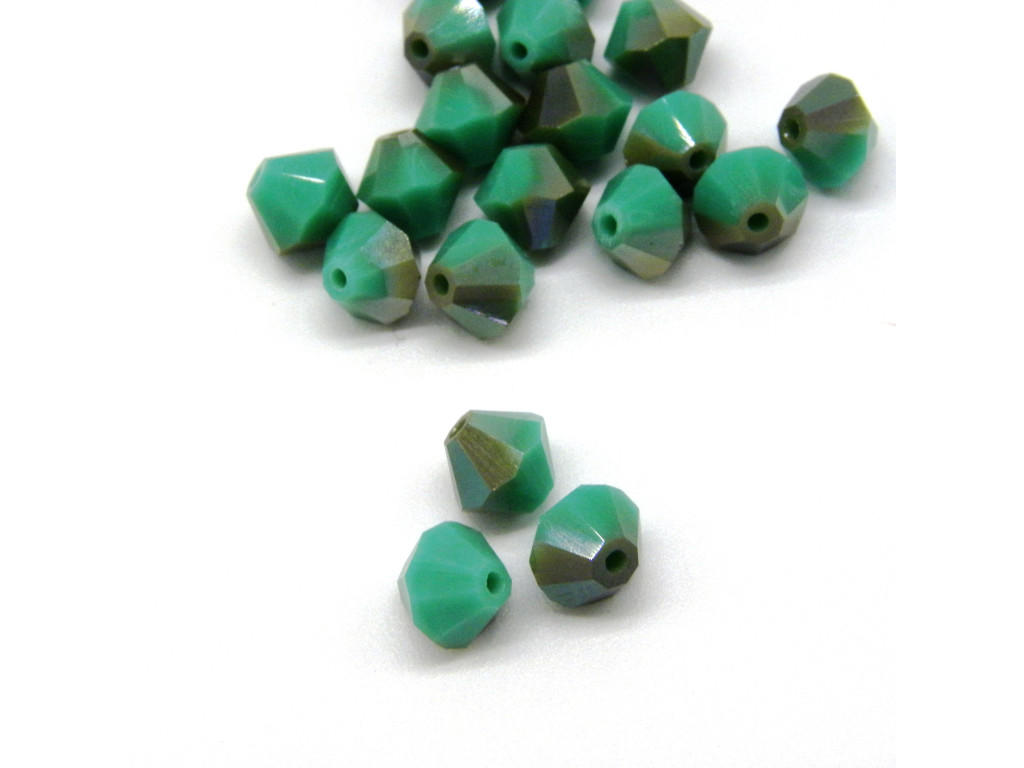 6 mm Tschechische MC Doppelkegelperlen, facettierte böhmische Kristallperlen - Green Turquoise Celsian