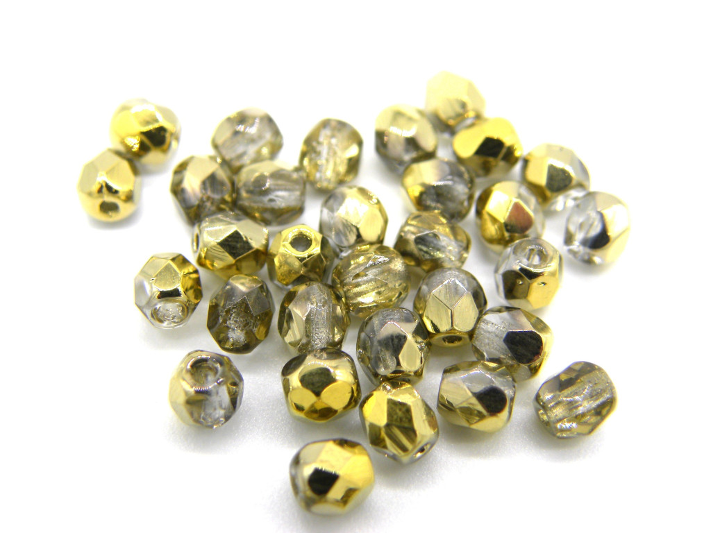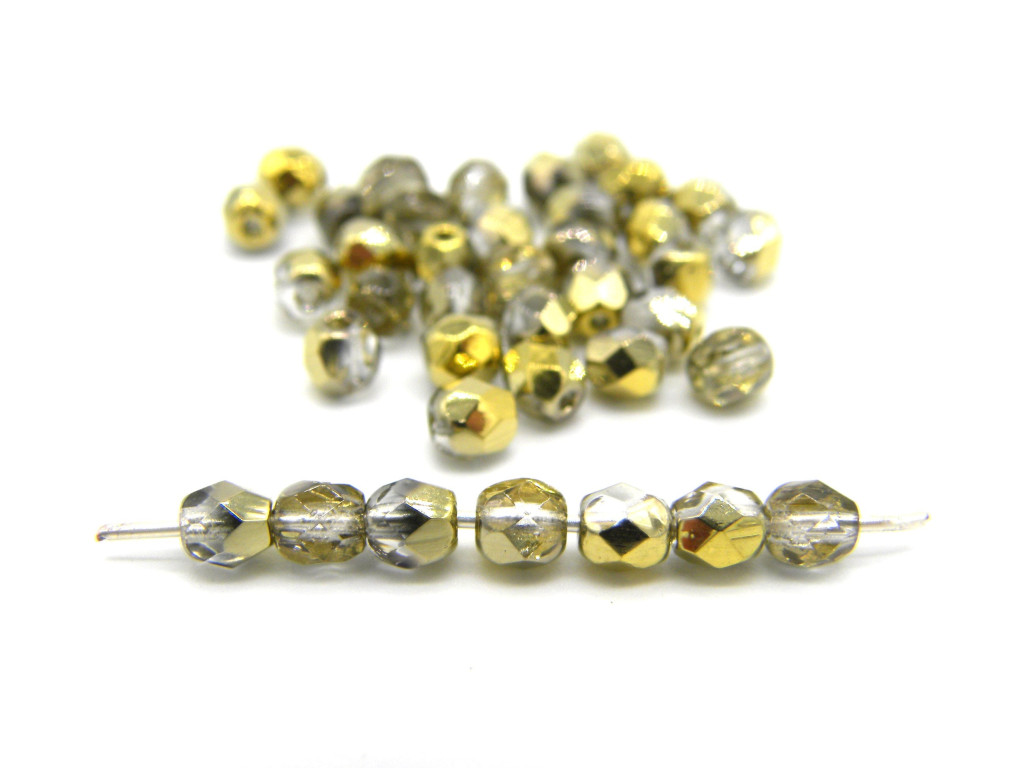Kleine runde feuerpolierte Glasperlen 4 mm - Crystal Gold - 90 Stück