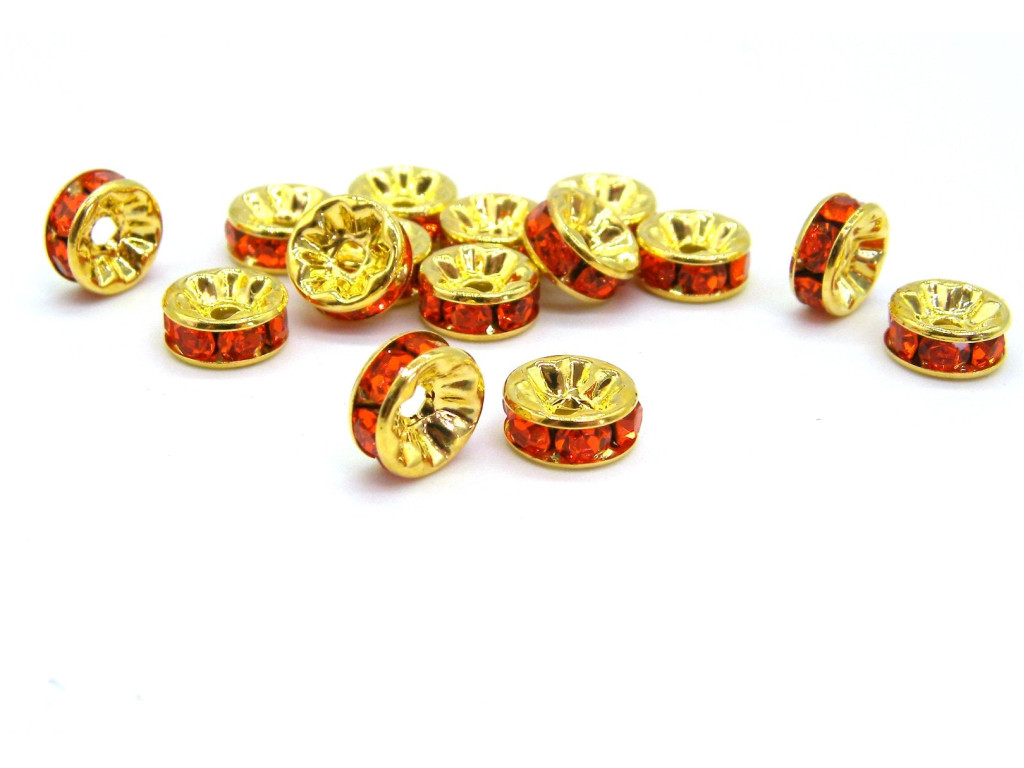 Vergoldete runde Strassrondelle, Kristallrondelle, Strassperlen - 8 mm - Hyacinth Orange