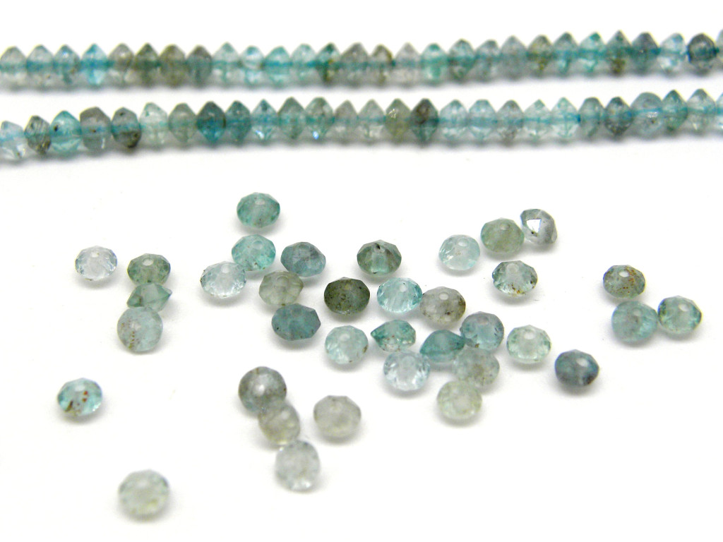 Schnellsuche Schmuckzubehör, Edelsteinperlen, facettierte Perlen, geschliffene Perlen, 3 mm Apatit-Rondelleperlen, Apatit-Doppelkegel, Apatit-Rhomben, kleine Apatitperlen, Apatit kegelförmig