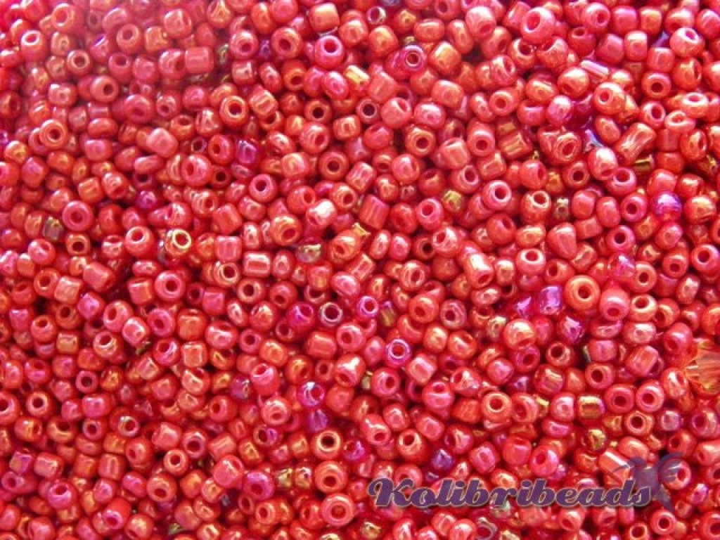 Schnellsuche Perlen, Glasperlen, Miyuki Perlen Irland, Rocailles, Rocailles 2mm, Rocailles Größe 11, Glas, rot, opak, irisierend, AB