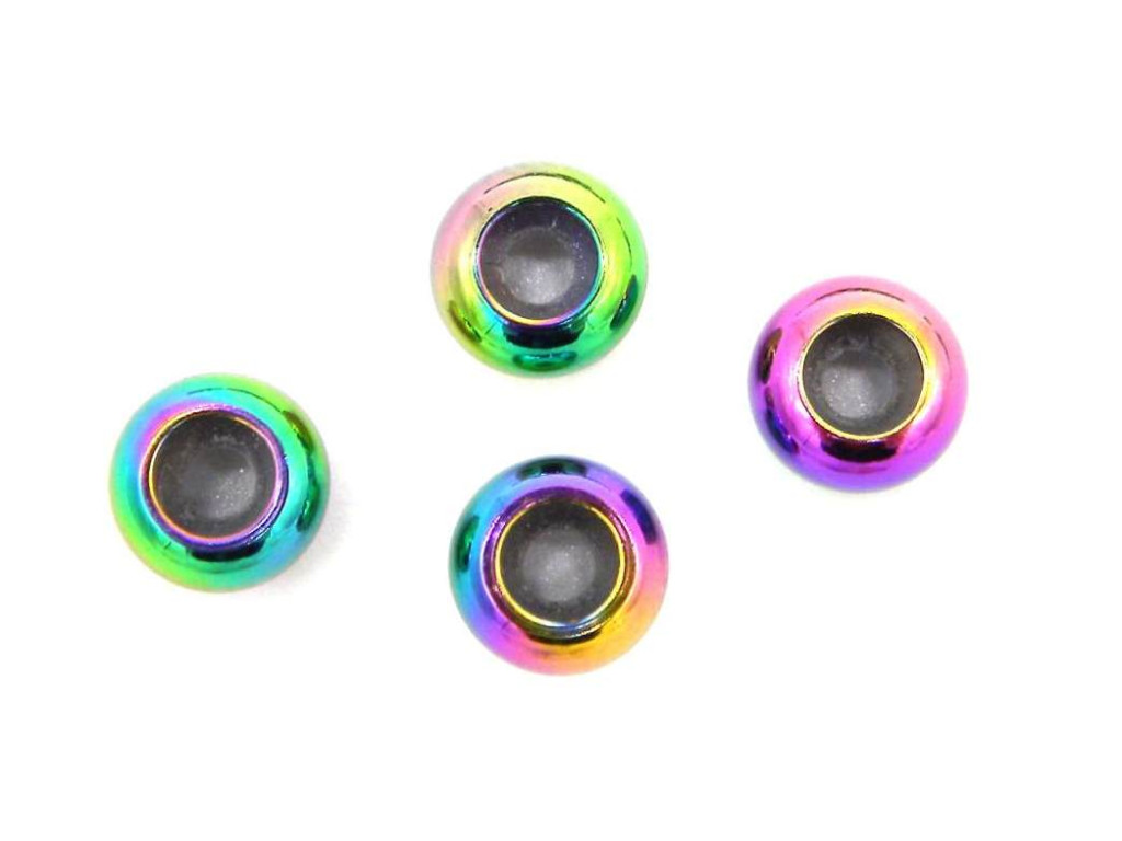 Regenbogenfarbene Edelstahl-Rondelle-Stopperperlen 6 mm mit Gummieinlage - 2 Stück