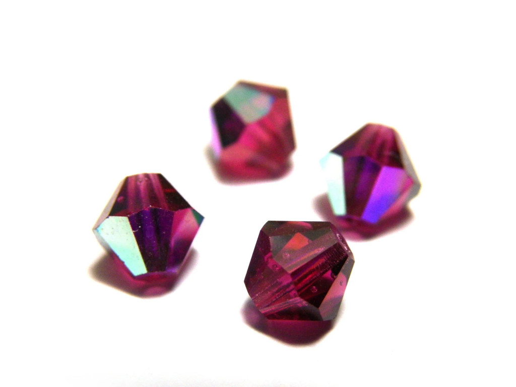 Tschechische MC Doppelkegelperlen, facettierte böhmische Glasperlen - 6 mm - Fuchsia AB - 20 oder 100 Stück