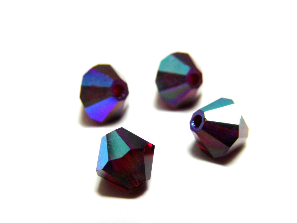 Tschechische MC Doppelkegelperlen, facettierte böhmische Glasperlen - 6 mm - Garnet AB