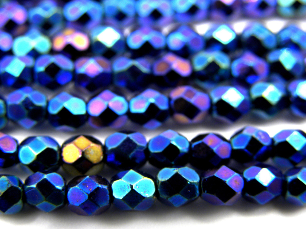 4 mm Round Faceted Fire-polished Czech Glass Beads (50 pc.) - Blue Iris