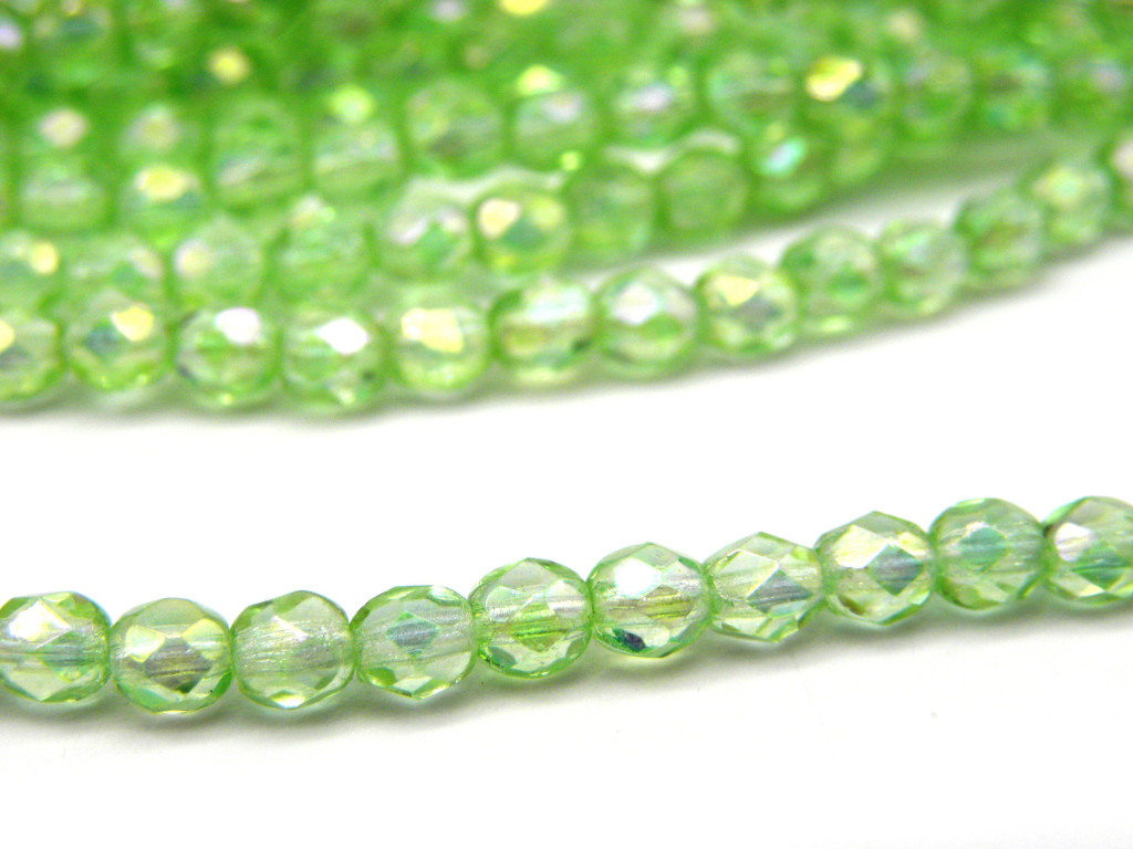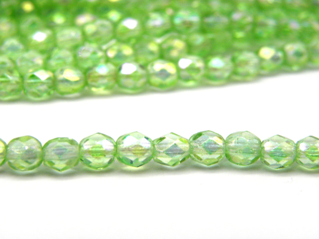 4 mm Small Round Fire-polished Glass Beads - Chrysolite Luster - 50 pc