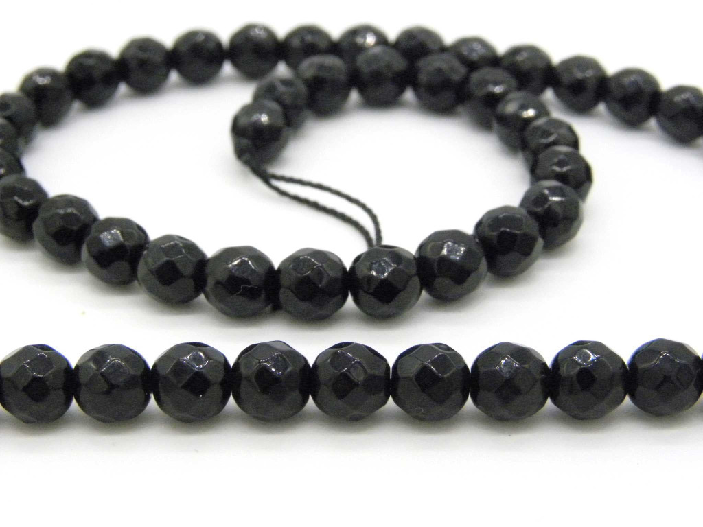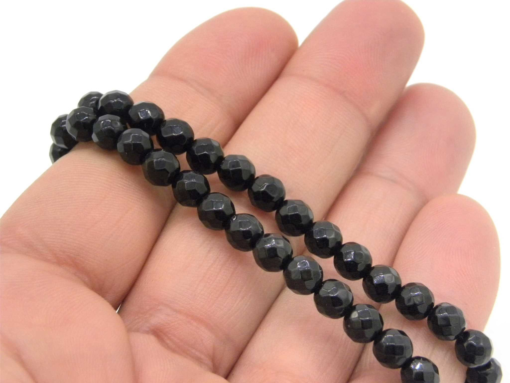 6 mm Small Round Faceted Black Onyx Beads, Faceted Gemstone Beads - 20 Beads or Strand