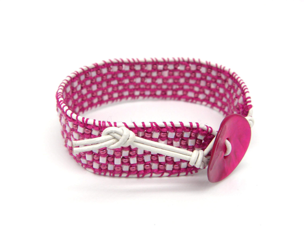 Tags: pink bracelet, button bracelet, shell bead bracelet, stitched bracelet, leather bracelet, hand made bracelets, made in Ireland, unique bracelet, bracelet gifts