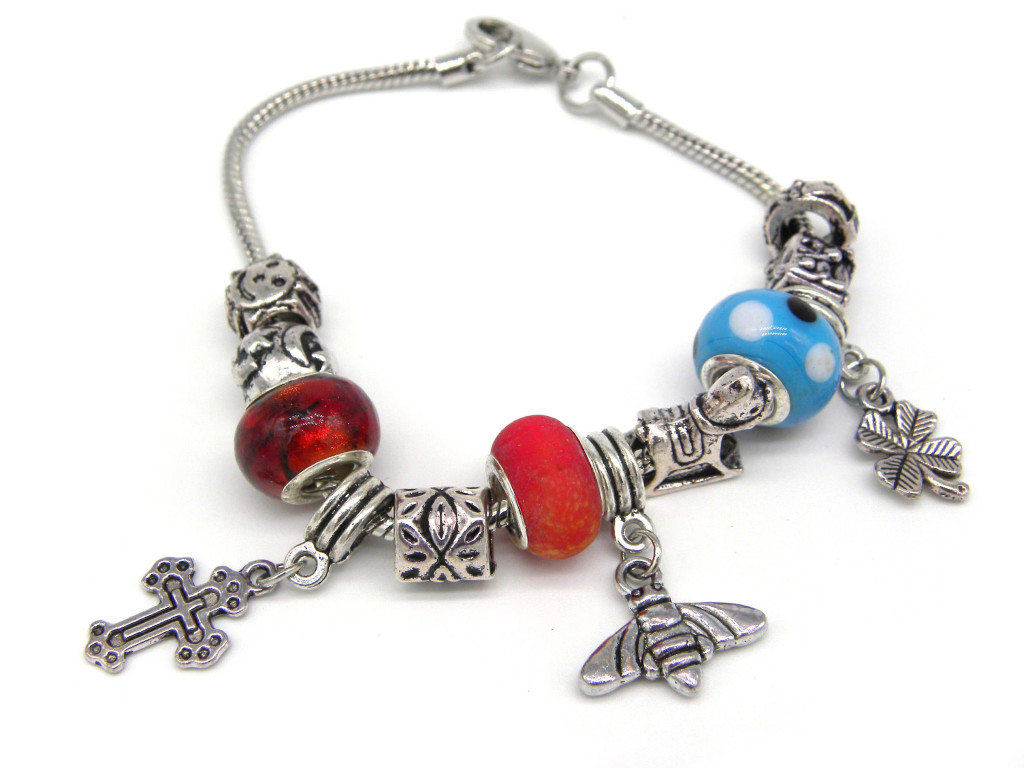 Tags: charm bracelet, European style bracelet, costume jewellery bracelet, good luck charms, lucky charm bracelet, jewellery supplies Ireland, space ship beads, rocking horse beads, large hole beads